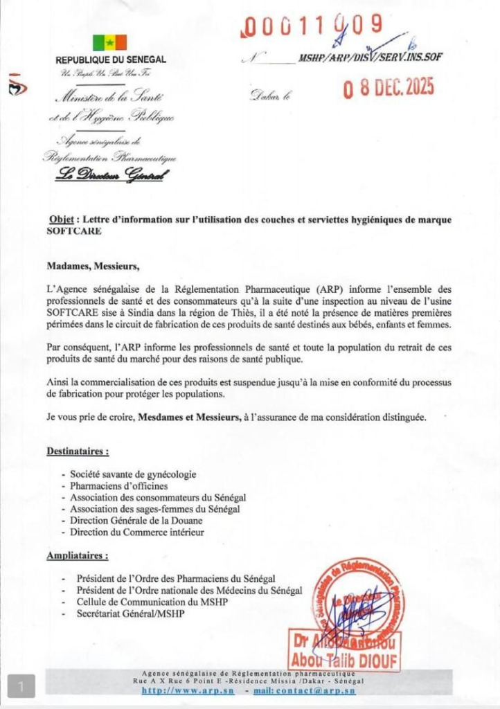 La marque SOFTCARE très connu pour ces couches pour bébés et des serviettes hygiéniques et lingettes disponible sur le marché national, est selon l’ARP retiré car les contrôleurs ont mis au jour l’utilisation de matières premières périmées dans la chaîne de production. Un « manquement grave aux normes de sécurité sanitaire », selon les conclusions préliminaires. Un Scandale sanitaire et une menace sur la santé publique. Un soulèvement de questions sur les chaînes de contrôles, les risques pour les consommateurs et sur l’éthique industrielle.
